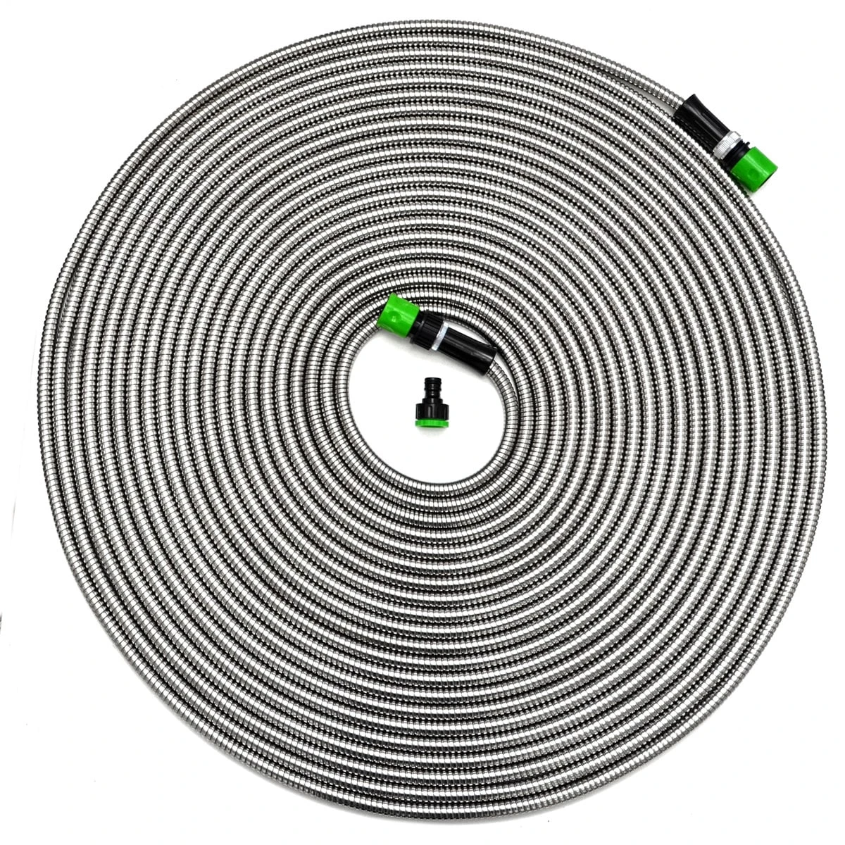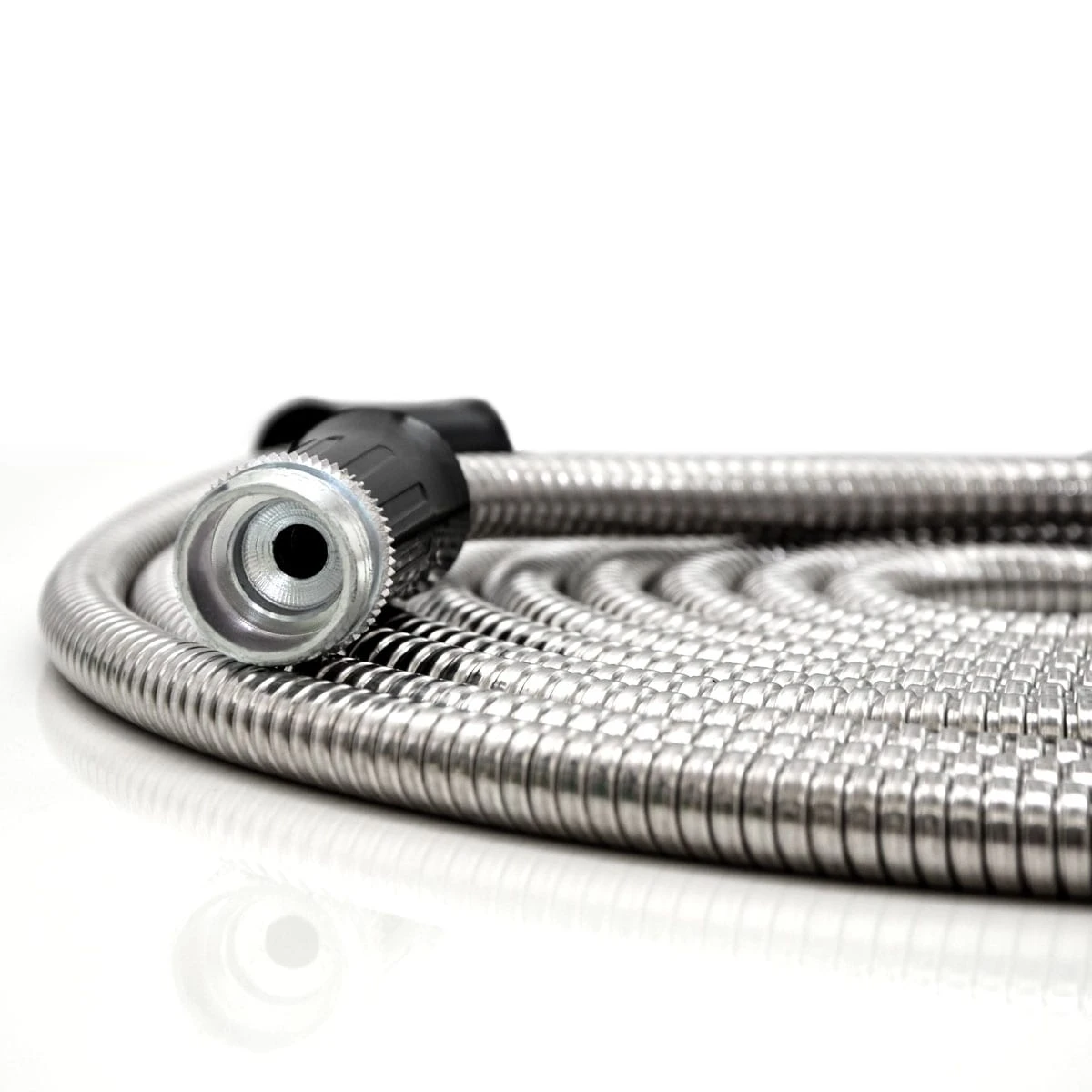 Die rostfreie Ummantelung aus 304 Edelstahl macht den Wasserschlauch extrem robust und strapazierfähig: Kein Knicken, Abdrücken oder Platzen – auch Dornen, Steine oder Äste haben keine Chance. Der stabile Mantel hält sogar Hundebisse aus!