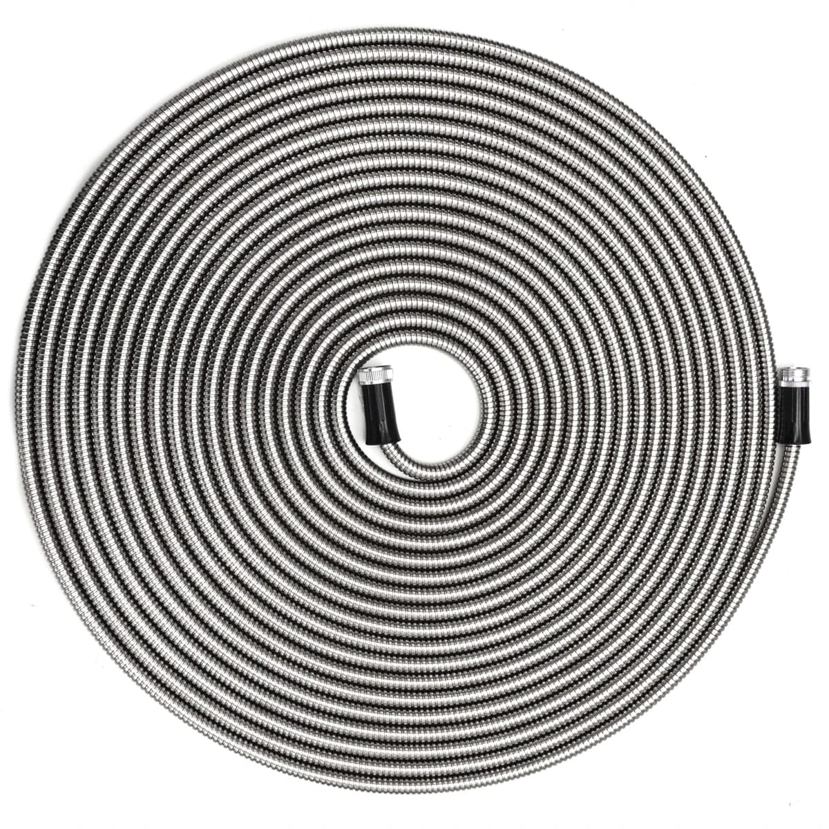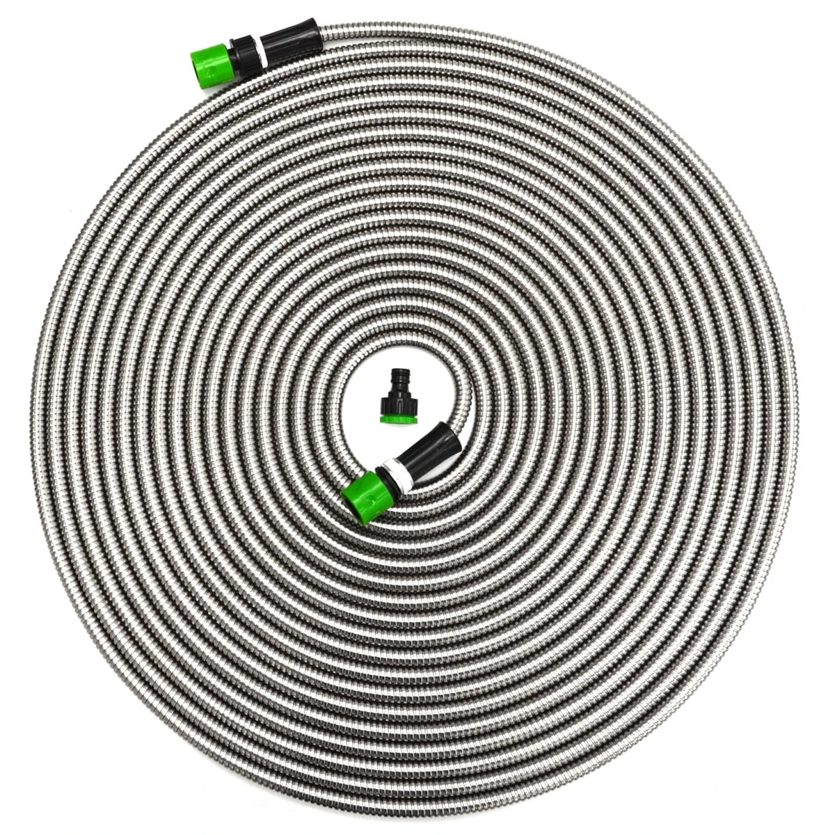 Die rostfreie Ummantelung aus 304 Edelstahl macht den Wasserschlauch extrem robust und strapazierfähig: Kein Knicken, Abdrücken oder Platzen – auch Dornen, Steine oder Äste haben keine Chance. Der stabile Mantel hält sogar Hundebisse aus!