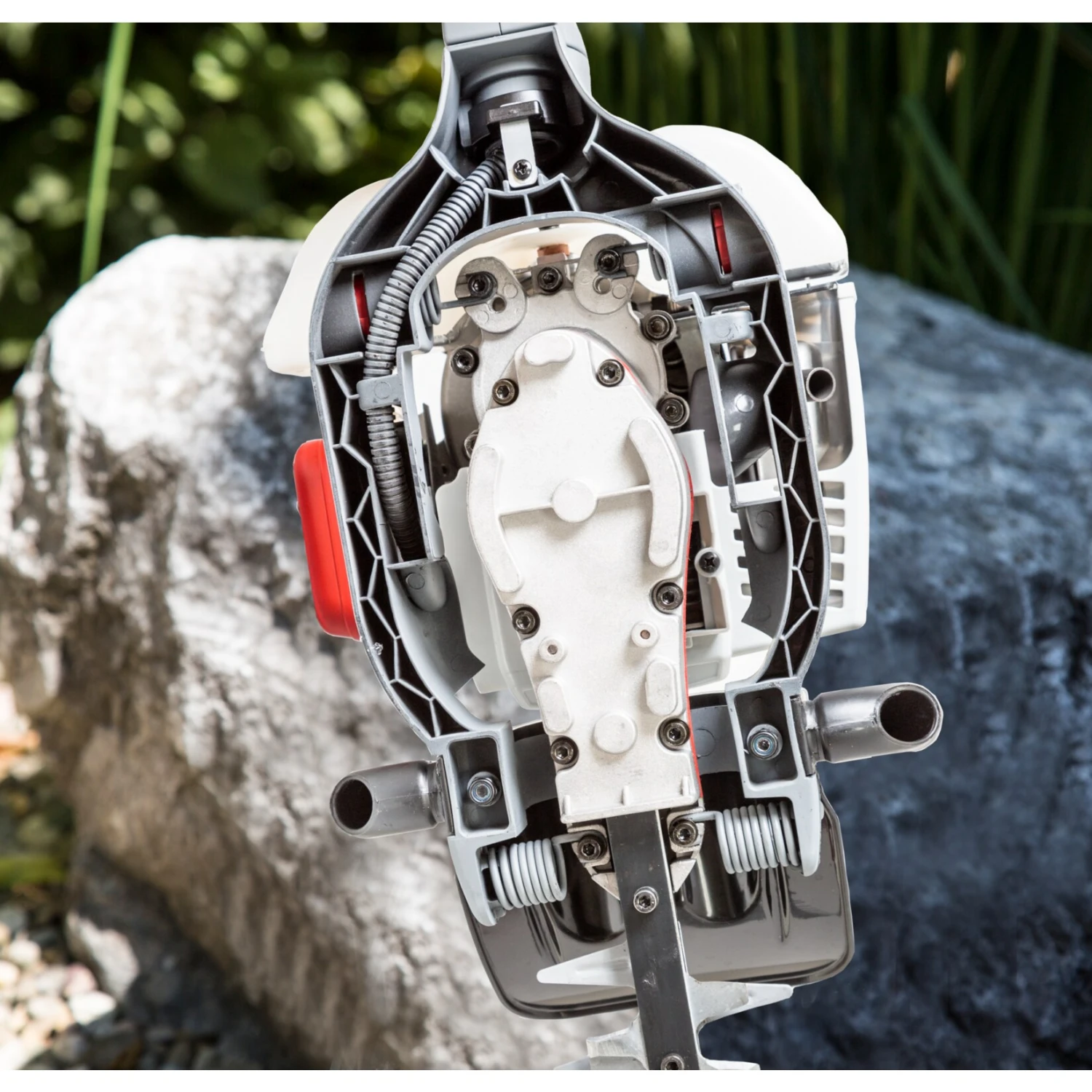 Das Antivibrationssystem reduziert Vibrationen und ist damit besonders schonend für Arme, Schultern und Rücken. Die Maschine ist mit einem Primer (Gummipumpe) und einem Chokehebel (Starterhebel) versehen.