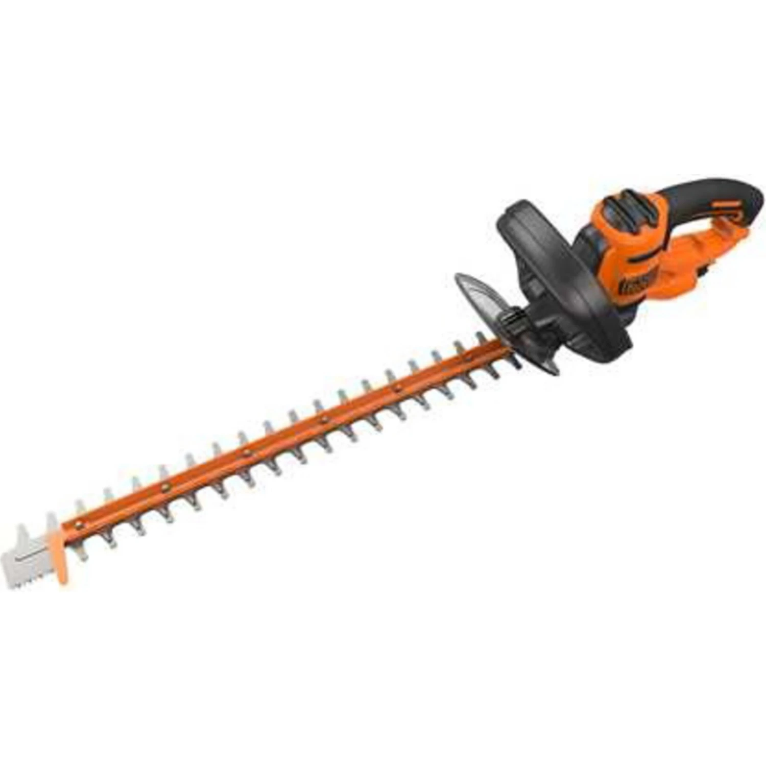 Die leistungsstarke Elektro-Heckenschere BEHTS401 von BLACK+DECKER ermöglicht kraftvolles Schneiden und mit einer Schnittstärke von 22mm eine hohe Schnittleistung. Sie eignet sich besonders gut für mittelgroße Hecken. Die Sägeblattspitze ermöglicht dabei auch das Schneiden dickerer Zweige bis zu 35mm Durchmesser ohne Zuhilfenahme zusätzlicher Werkzeuge. Das geringe Gewicht und das ergonomisches Design mit Bügelhandgriff erlauben eine gute Steuerung bei unterschiedlichen Anwendungswinkeln. Die langlebigen, robusten und gegenläufigen Messer sind aus gehärtetem Stahl gefertigt und ermöglichen einen vibrationsarmen Lauf. Der transparente Handschutz verbessert die Sicht bei vertikalen Heckenarbeiten. Der Direktanschluss des Verlängerungskabels und die Kabelzugentlastung sorgen während des Betriebs für sichere Kabelführung ohne versehentliches Steckerziehen.