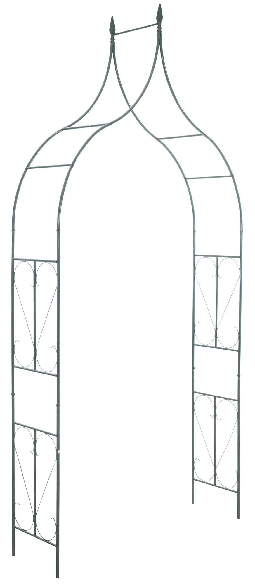 Exklusiver Rosenbogen aus pulverbeschichtetem Eisen. Dieser Bogen hat ein elegantes Design und ist die ideale Rankhilfe für alle Rankpflanzen, wie z.B. Rosen oder Efeu.
