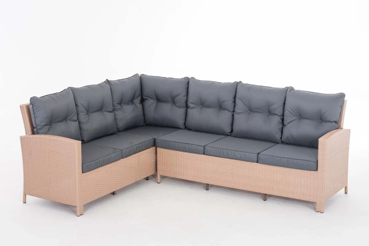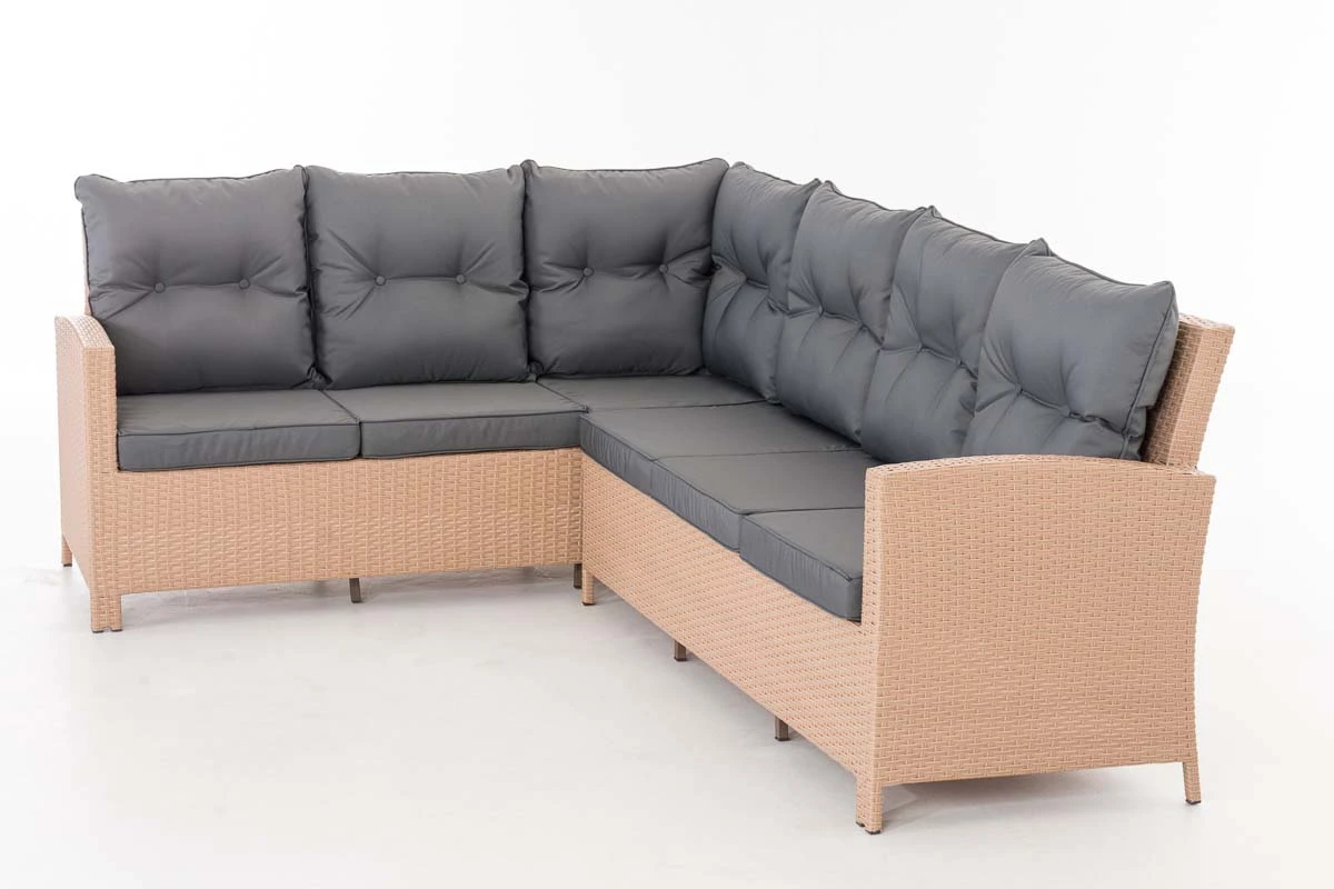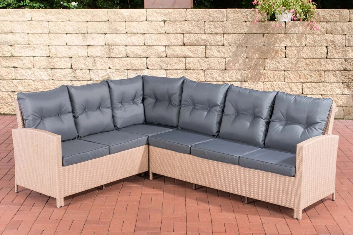 Polyrattan sieht aus wie herkömmliches Rattan, hat aber deutlich mehr Vorteile. Im Gegensatz zu normalem Rattan, ist Polyrattan besonders gut für die Verwendung im Außenbereich geeignet, da das Material sehr widerstandsfähig ist und nicht zum Fasern neigt. Polyrattanfasern sind wasserfest, pflegeleicht und UV-beständig, sodass sie auch bei häufiger und langjähriger Nutzung unverändert ihre Farbtiefe behalten. Polyrattan Möbel sind um einiges leichter als herkömmliche Gartenmöbel, da das Gestell aus Aluminium besteht, sodass große Gartenmöbel auch leichter mal verrückt werden können. Durch das pulverbeschichtete Aluminium sind die Möbel stabil und dauerhaft rostfrei. Die Mehrfachverstrebungen sorgen zusätzlich für eine extreme Stabilität. Die Polster sind mit Bezügen aus 100 % Polyester versehen. Diese sind wasser- sowie schmutzabweisend und durch ihre hohe Strapazierfähigkeit lange haltbar. Dank der verdeckt eingenähten Reißverschlüsse lassen sich die Bezüge bei Bedarf einfach abnehmen und waschen.
