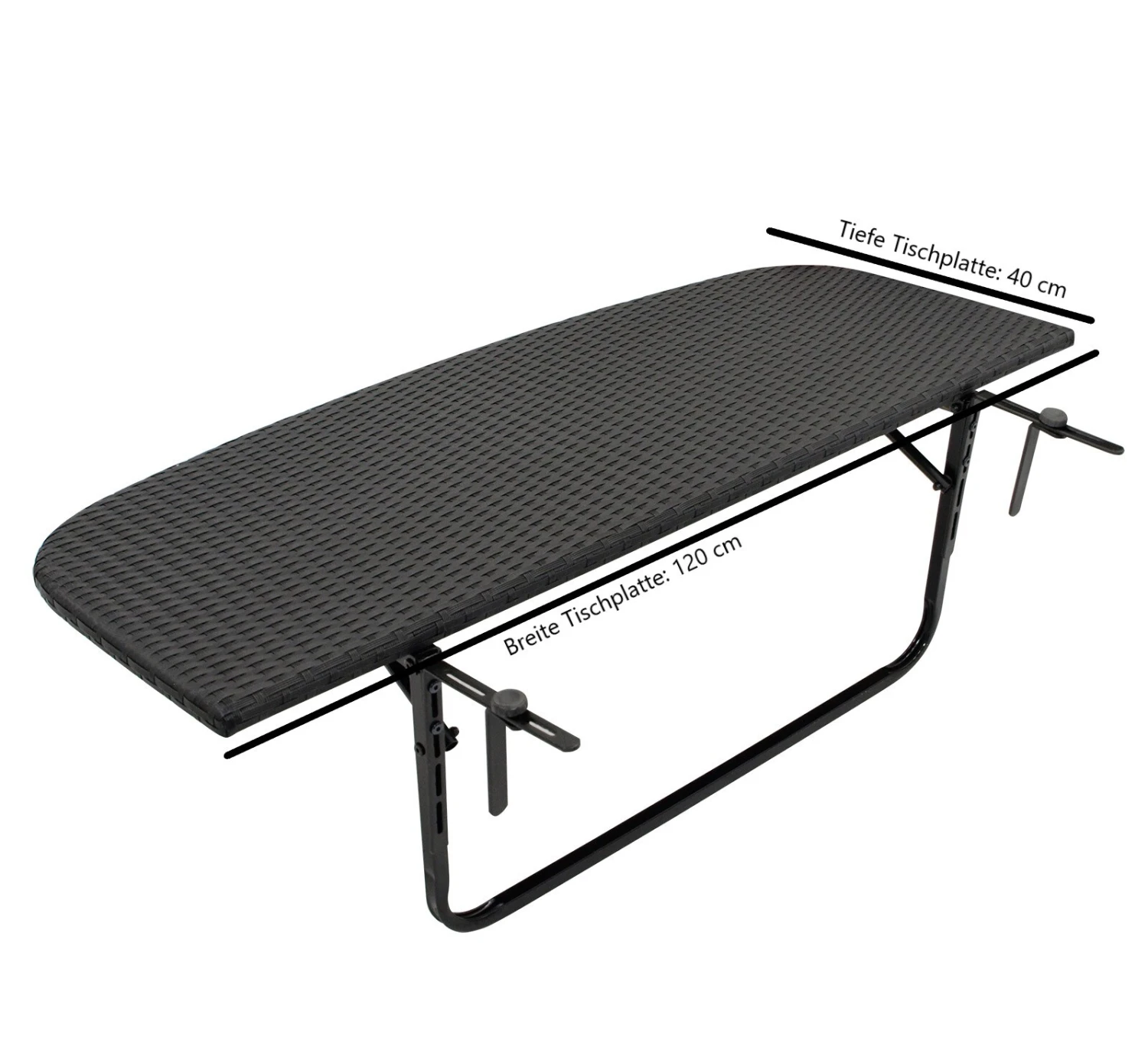 Praktischer Balkonklapptisch 120x40cm Optimal für kleine Balkone und Terrassen. Bei Nichtgebrauch lässt der Tisch sich einfach abklappen und beansprucht so gut wie keinen Platz.