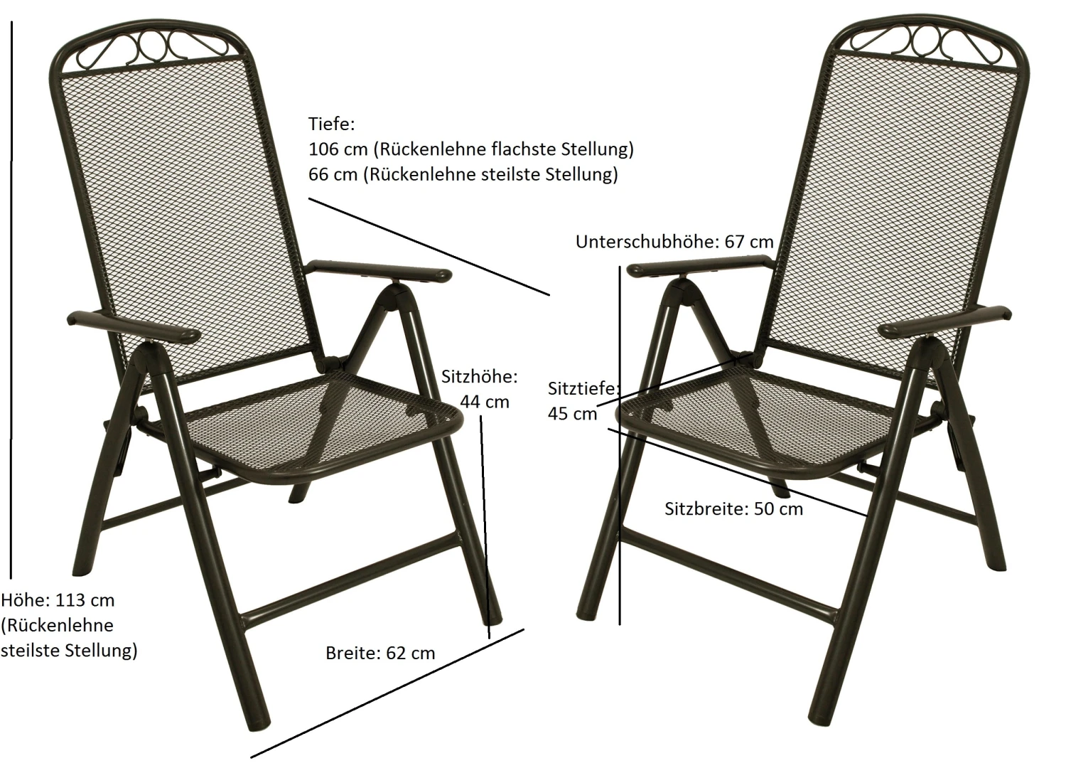 Tiefe: 106cm (Rückenlehne flachste Stellung),