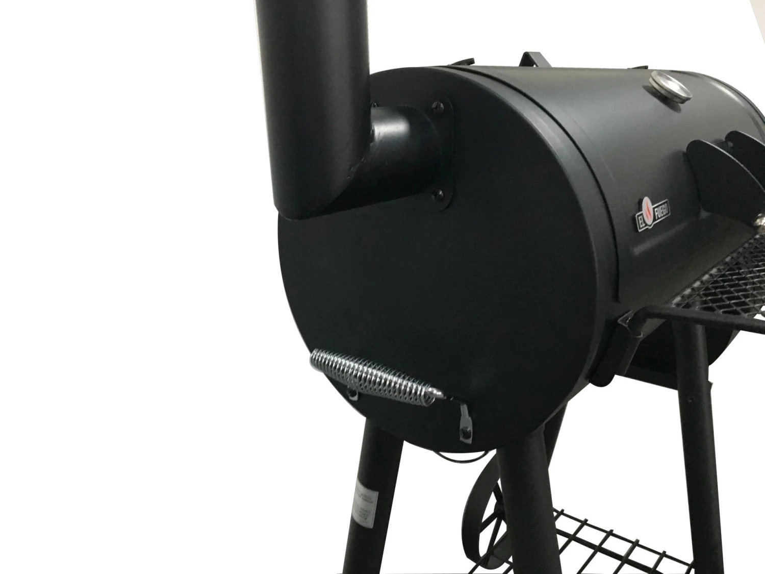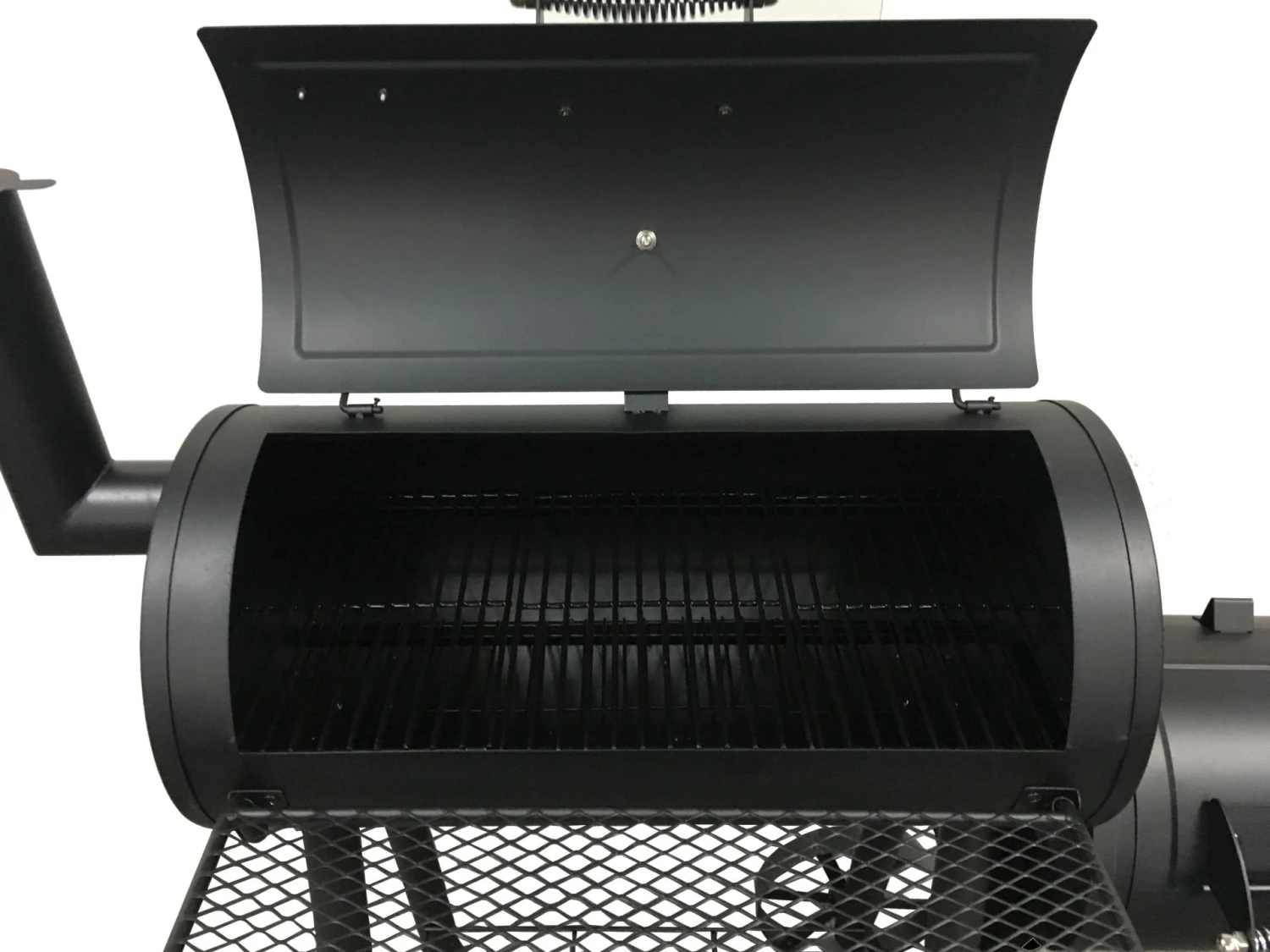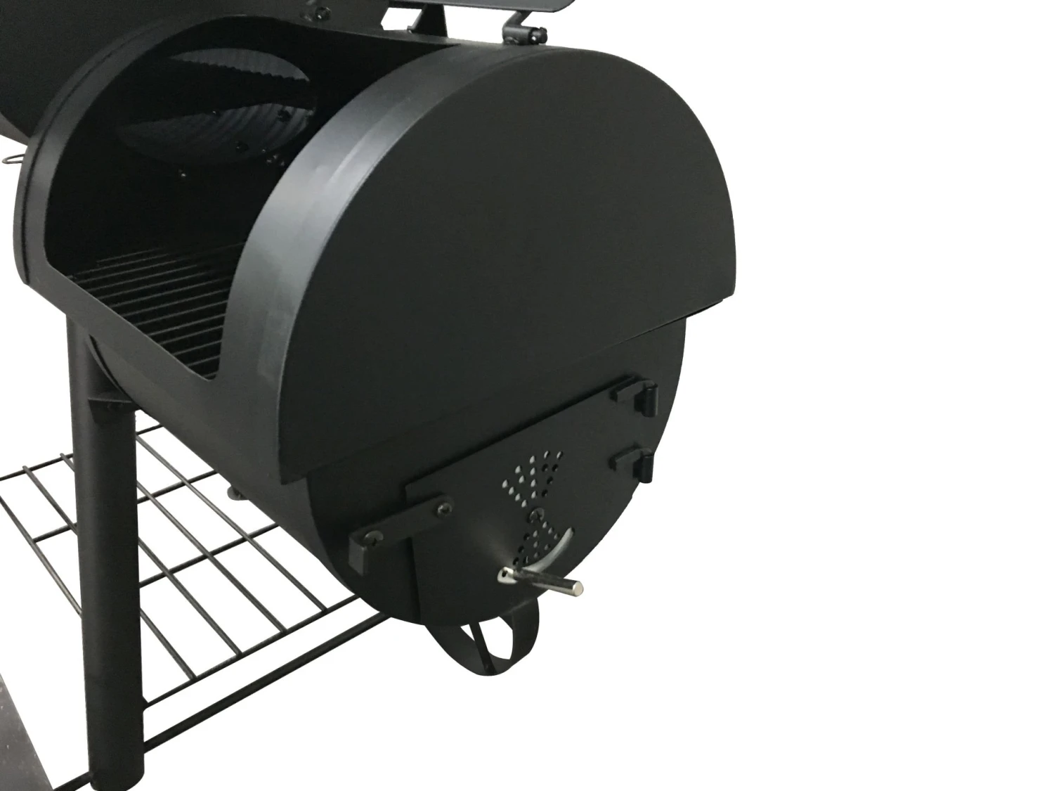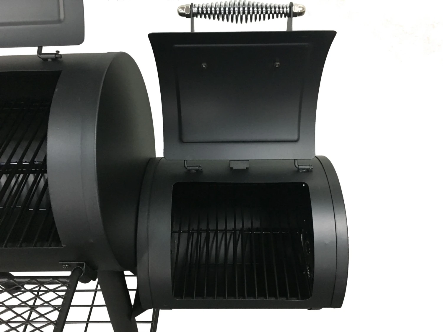 - Separate Feuerkammer (für Einsatz als Smoker) mit weiterem Rost (ca. 32 x 31 cm)