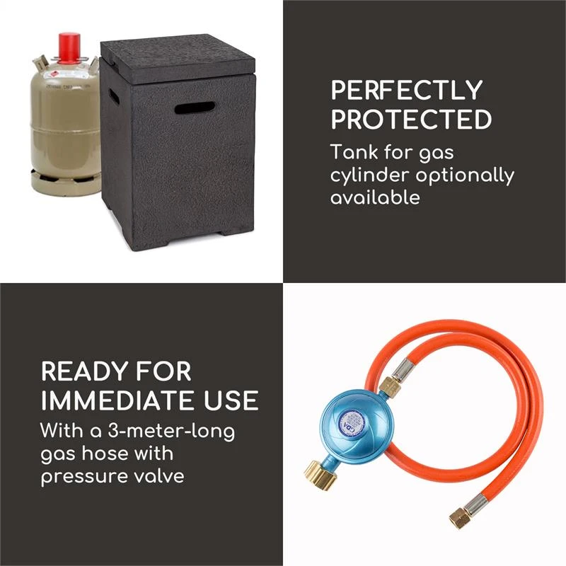 Als passender Zubehör-Artikel der Blumfeldt El Hierro Gas-Feuerschale ist die Blumfeldt Gas Garage Aufbewahrungs-Box (10033451) zum Schutz Ihres Gas-Behälters optional erhältlich.