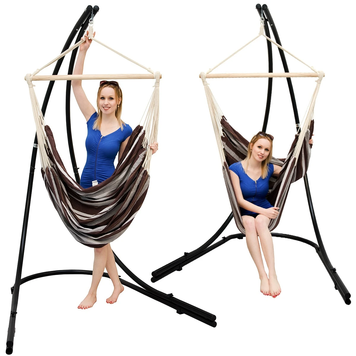 OHNE DECKENMONTAGE: Mit dem Hängesessel-Ständer aus Metall müssen Sie sich keine Gedanken über die sichere Befestigung Ihrer Hängeschaukel machen. Zur Aufhängung von Hängesitz oder Schwebesessel am Gestell wird als Zubehör ein S-Haken mitgeliefert