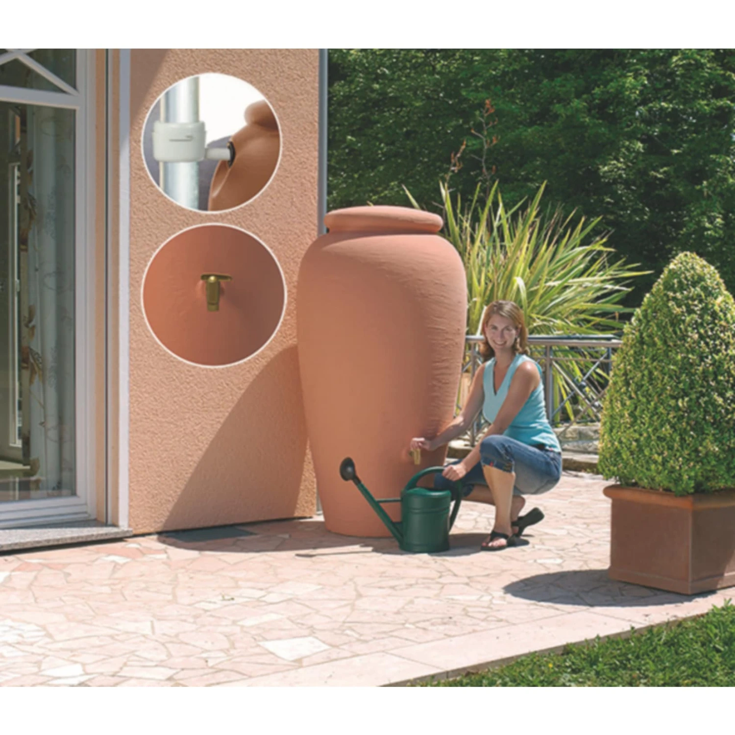Das Regenspeicher AMPHORA Komplett-Set terrakotta wird Ihnen anschlussfertig nach Haus geliefert.