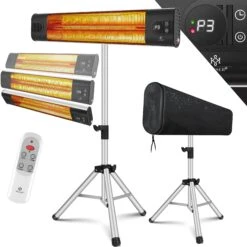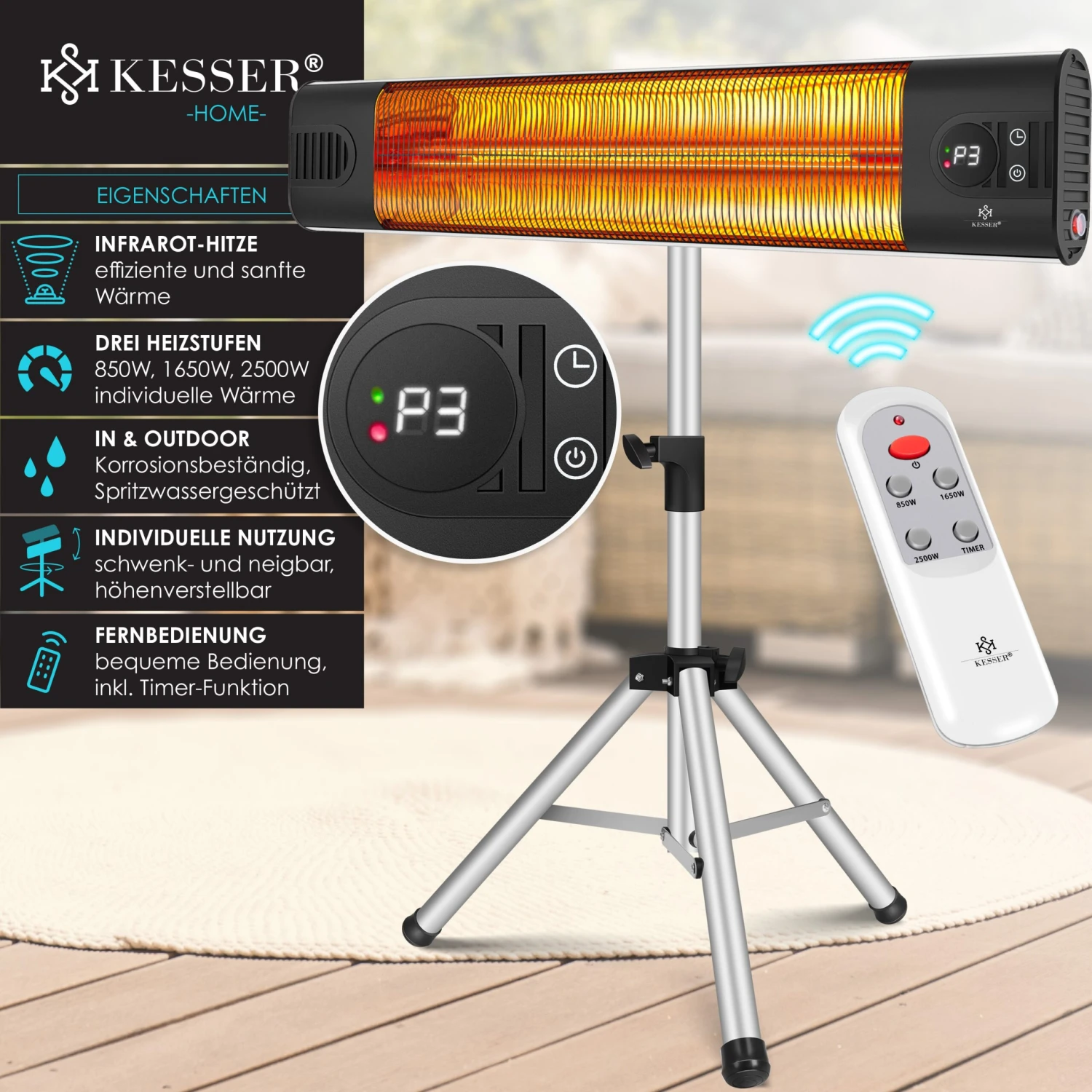 KESSER Infrarot-Heizstrahler mit robustem und ausziehbarem Stativ, per Fernbedienung steuerbar, für Indoor und Outdoor inkl. Schutzgitter und Wettercover sowie drei Heizstufen von 850W über 1650W bis hin zu 2500W