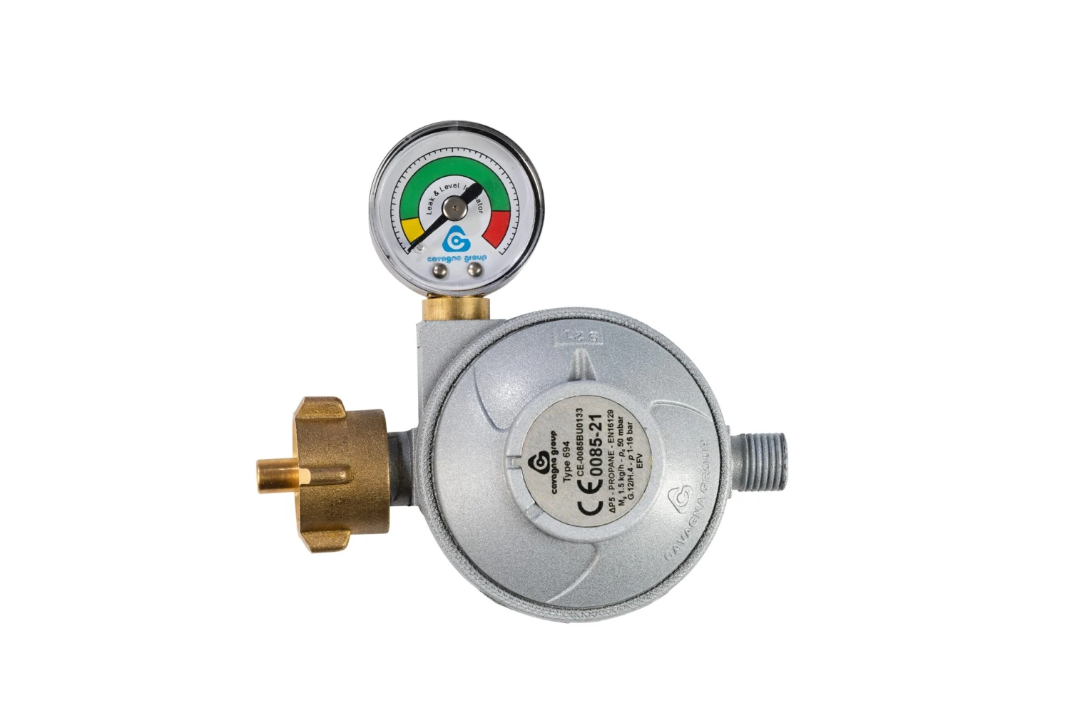 - Hauptfunktion: Gasdruckminderer überprüft, ob die richtige Gasmenge durch den Schlauch strömt. Wenn der Schlauch bricht oder reißt, wird der Gasfluss automatisch gestoppt.