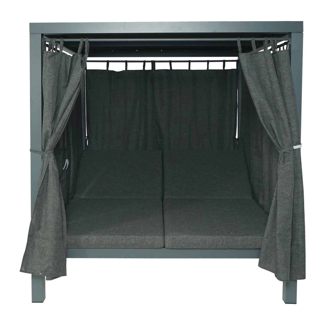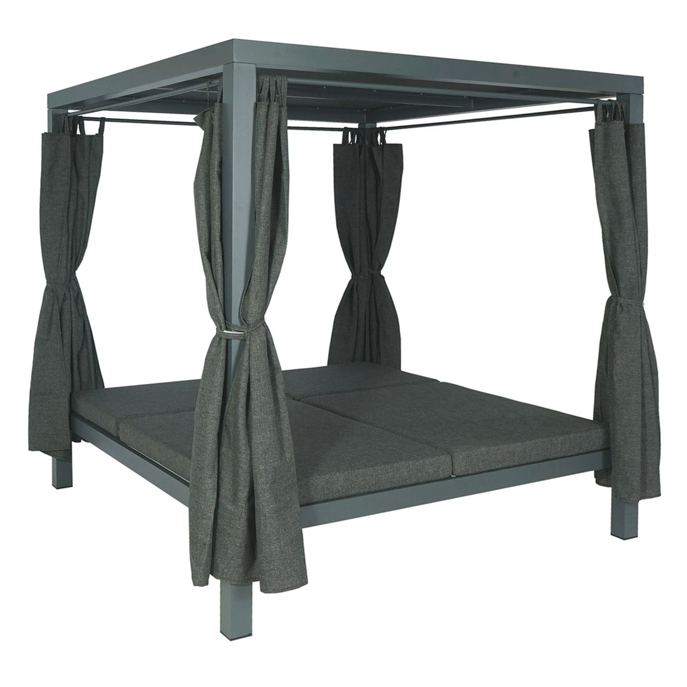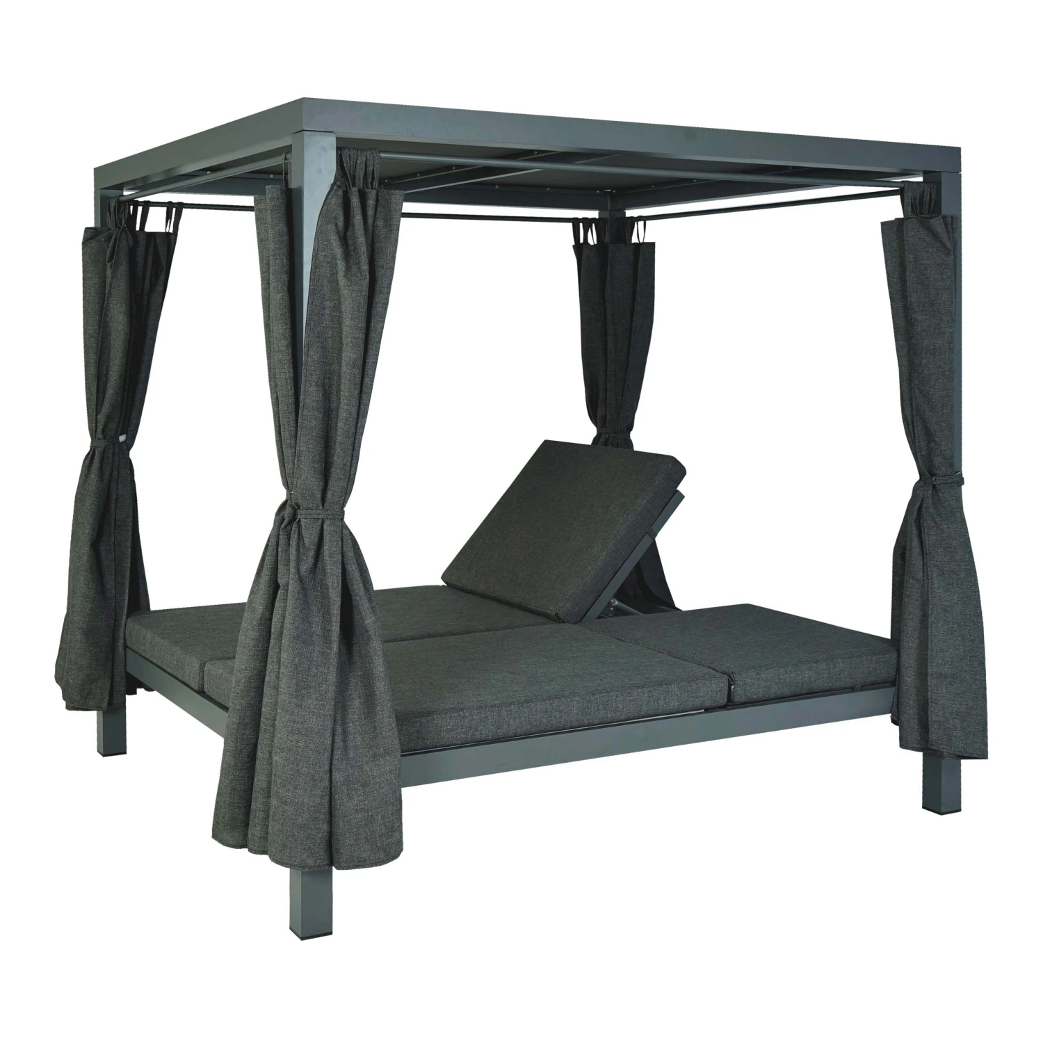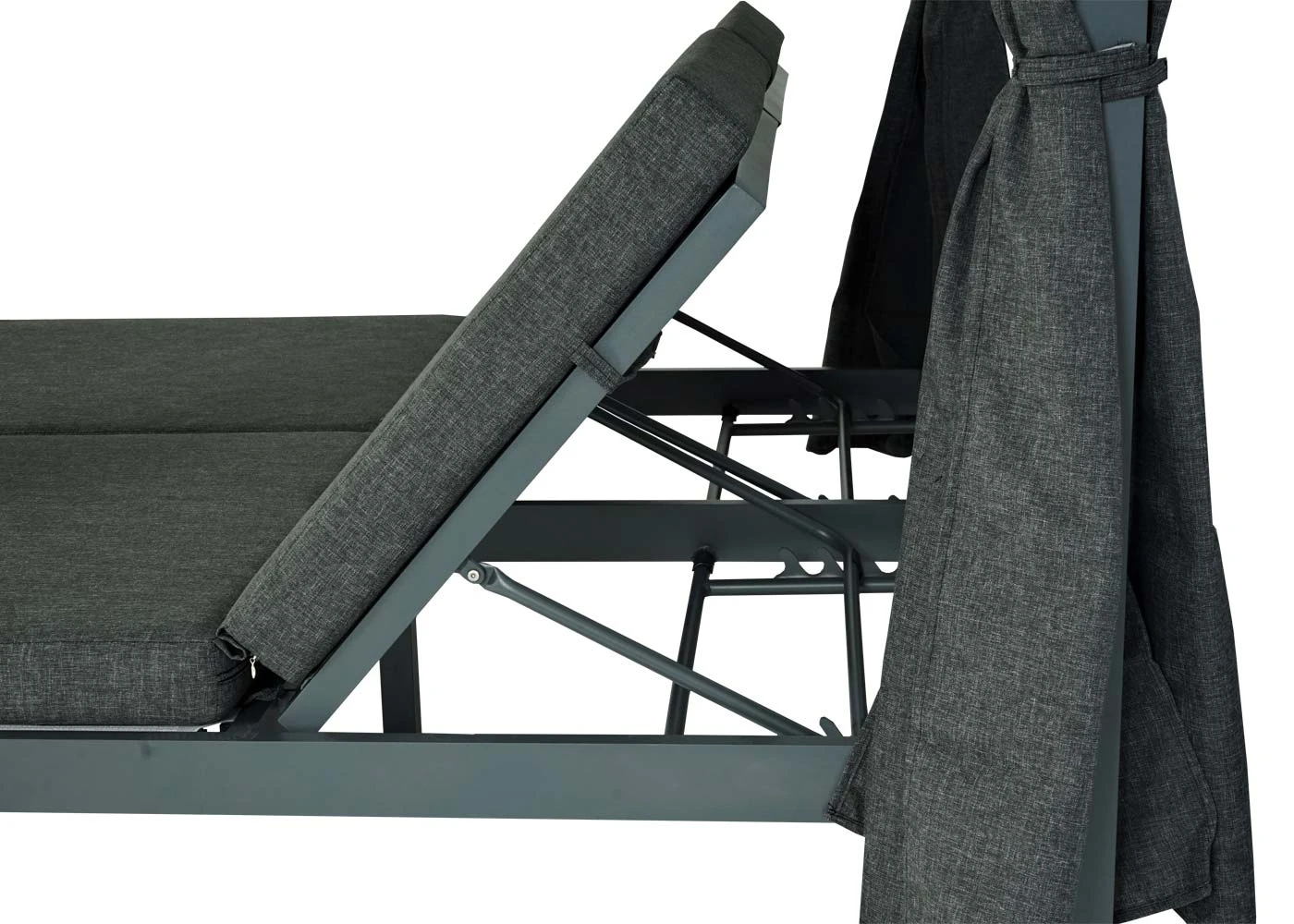 Sie möchten mehr Privatsphäre in Ihrem Garten? Dann ist dieses großzügige Pavillon mit Doppelbett genau das richtige für Sie! Genießen Sie in dieser Loungeliege Ihre Privatsphäre ohne neugierige Blicke der Nachbarn. Dank des Daches und der Vorhänge, die an allen vier Seiten verschlossen werden können, können Sie Ihre Privatsphäre in Ihrem Garten oder auf der Terasse in vollen Zügen genießen. Der Stoff ist wasserabweisend und bietet Ihnen auch Schutz vor Sonnenstrahlen. Diese Doppel-Lounge kann in 3 verschiedenen Positionen verstellt werden, um zusätzlichen Sitz- und Liegekomfort zu bieten. Die Vorhänge und Bezüge der beiden Matratzen sind abnehmbar und können problemlos in der Waschmaschine bei 40 Grad gewaschen werden. Entspannen Sie in dieser großen Gartenliege mit weicher Liegefläche, alleine, zu zweit oder mit Freunden und Familie.