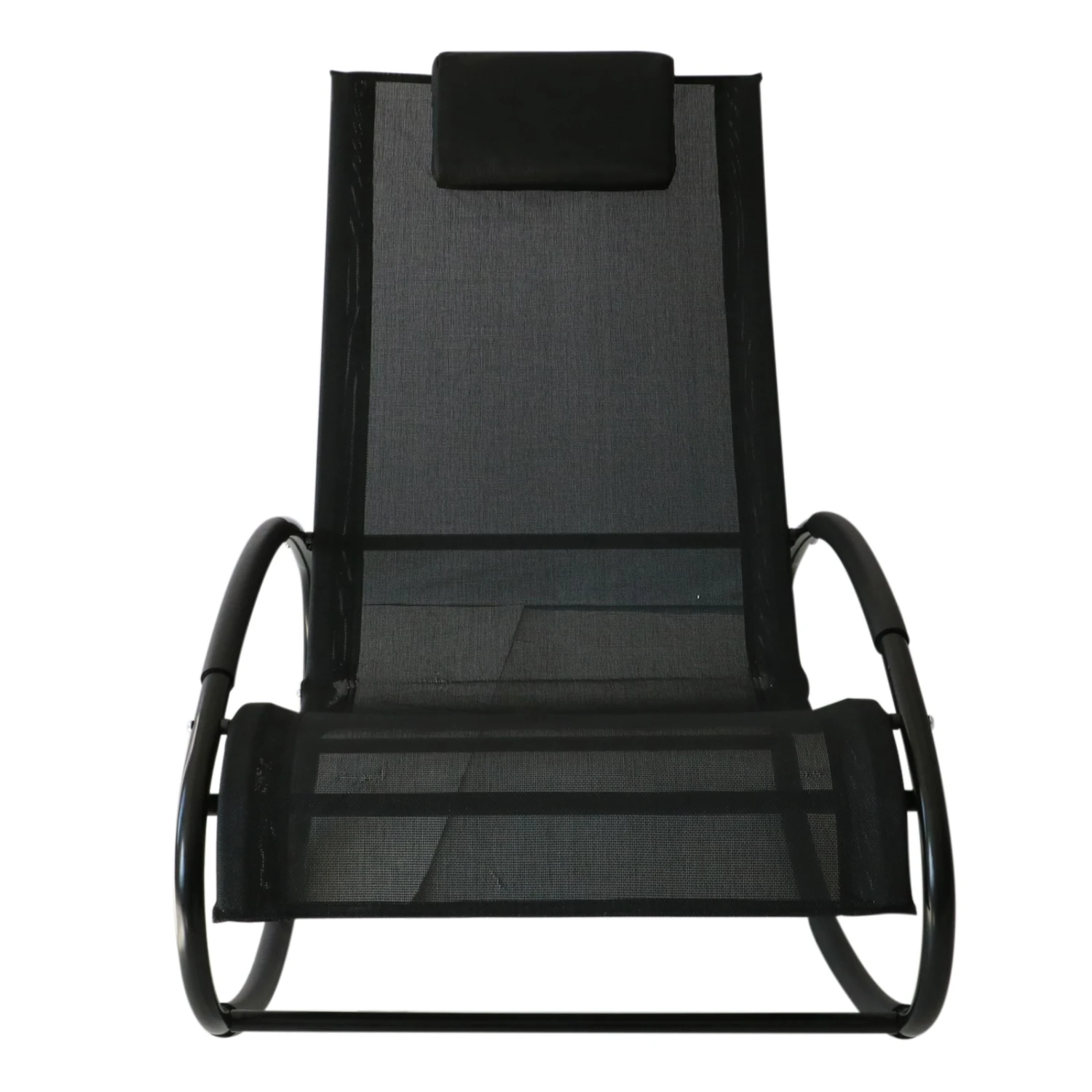 Unser Schaukelstuhl ist für besonders gemütliche Momente gemacht. Schnappen Sie sich ein gutes Buch oder genießen Sie einfach den Moment, während Sie seicht vor und zurück schaukeln. Das robuste Stahlgestell ist super stabil. Die Sitzfläche und Rückenlehne sind aus atmungsaktivem Textilene gefertigt und ein Kopfkissen ist auch inklusive, damit Sie immer bequem sitzen. Elegantes Design, hoher Komfort und tolle Verarbeitung: Mit Ihrem neuen Schaukelstuhl kommt die Erholung direkt zu Ihnen nach Hause.