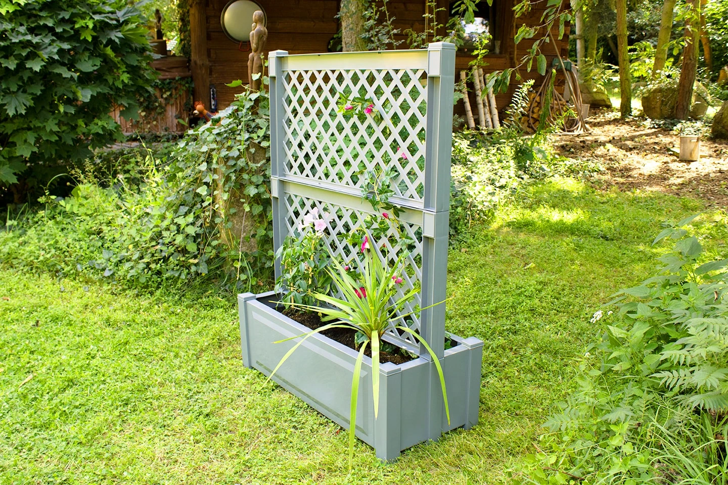Das Spalier ermöglicht eine beidseitige Begrünung.