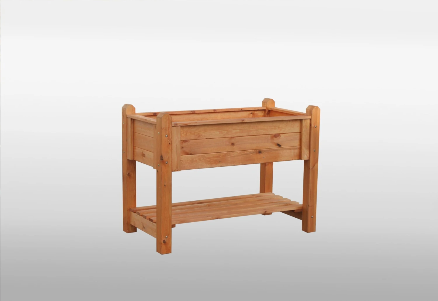 Als großer Vertreter dieser massiven Kräuterbeet-Serie bietet dieses im Farbton honigbraun gehaltene Hochbeet genügend Platz, um Küchenkräuter und Pflanzen jeder Art zu züchten. Dank der 7 cm starken Beine macht dieses aus imprägniertem Kiefernholz gefertigte Kräuterbeet einen sehr stabilen Eindruck. Im Lieferumfang enthalten ist eine passende Pflanzfolie.