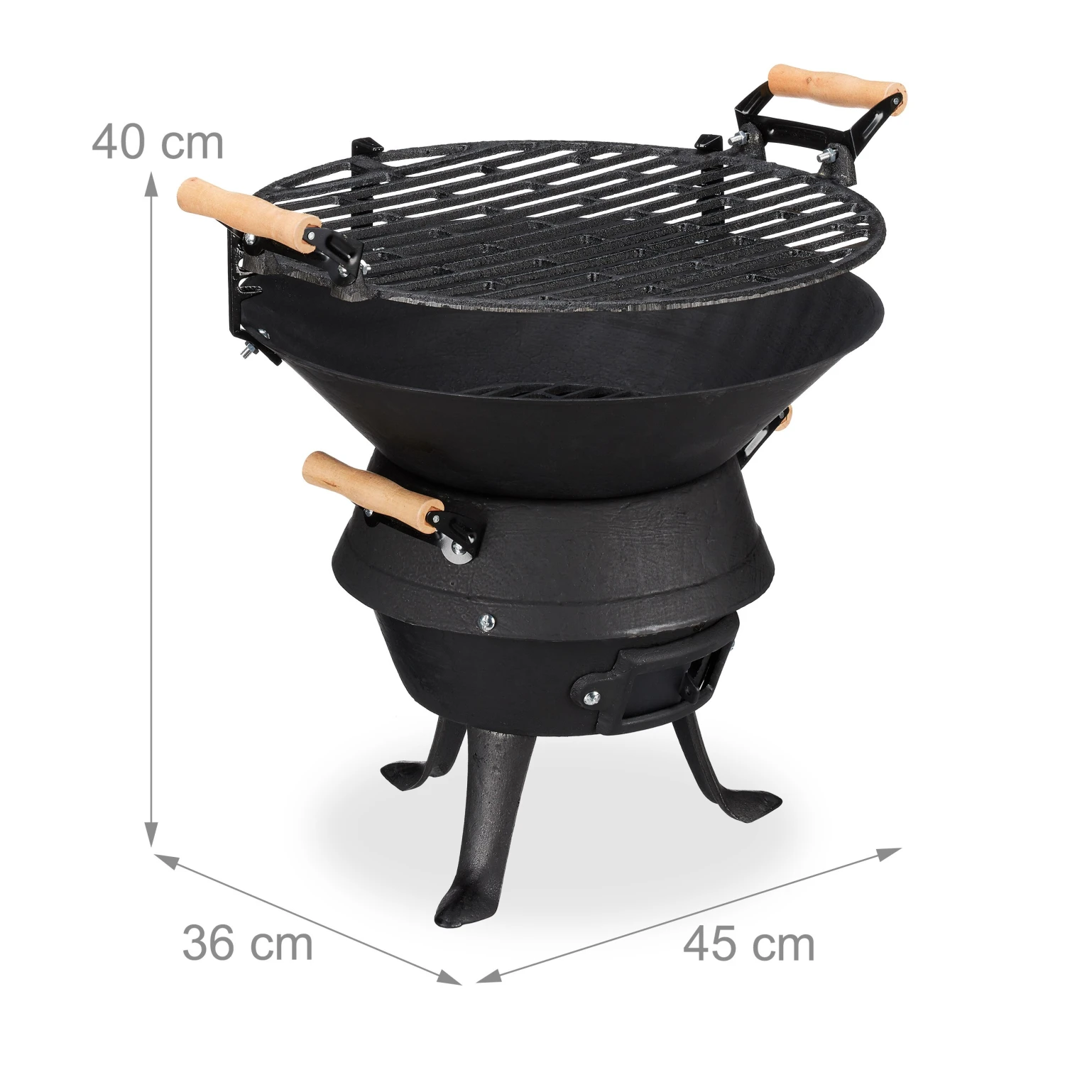 Der rustikale Grill bietet mit seiner gusseisernen Feuerschale und seinen schönen Holzgriffen eine authentische Feuerstelle für sommerliche Grillabende. Bruzeln Sie leckere Würstchen, Steaks und Gemüsetaschen auf der 35cm umfassenden Grillfläche des Grillfasses. Die Holzkohle wird auf dem Kohlerost, dank der optimalen Belüftung in der unteren Hälfte des Fasses, schnell erhitzt, sodass Sie nicht lange auf die heiße Glut warten müssen. Stellen Sie den Kohlegrill auf die Terrasse oder in den Garten und legen Sie los!