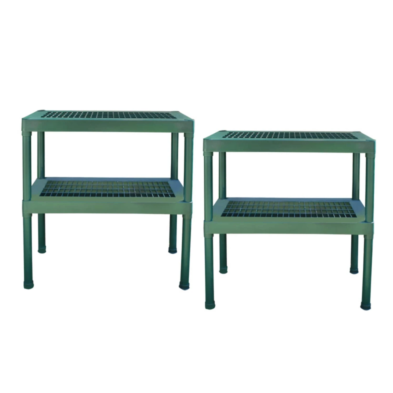 Der Tisch ist durch die robuste Ausführung aus Polyethylene Kunststoff sehr langlebig. Die Arbeitshöhe ist bequem und rückenschonend. 2 Etagen.