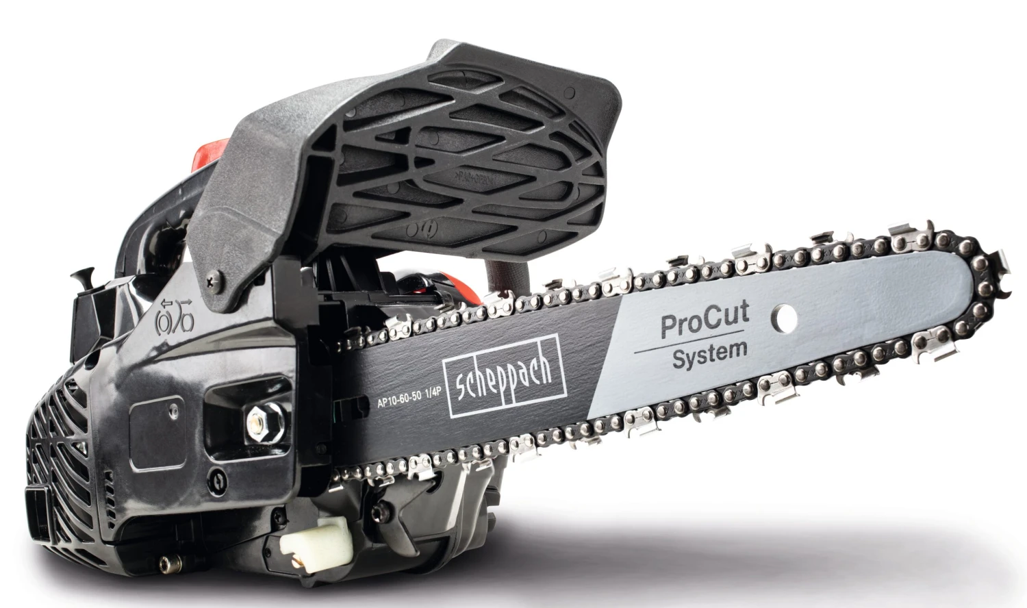 Die scheppach Top-Handle Benzin-Kettensäge CSP2540 ist ein kraftvolles Arbeitsgerät für den in der Baumpflege geschulten Anwender.