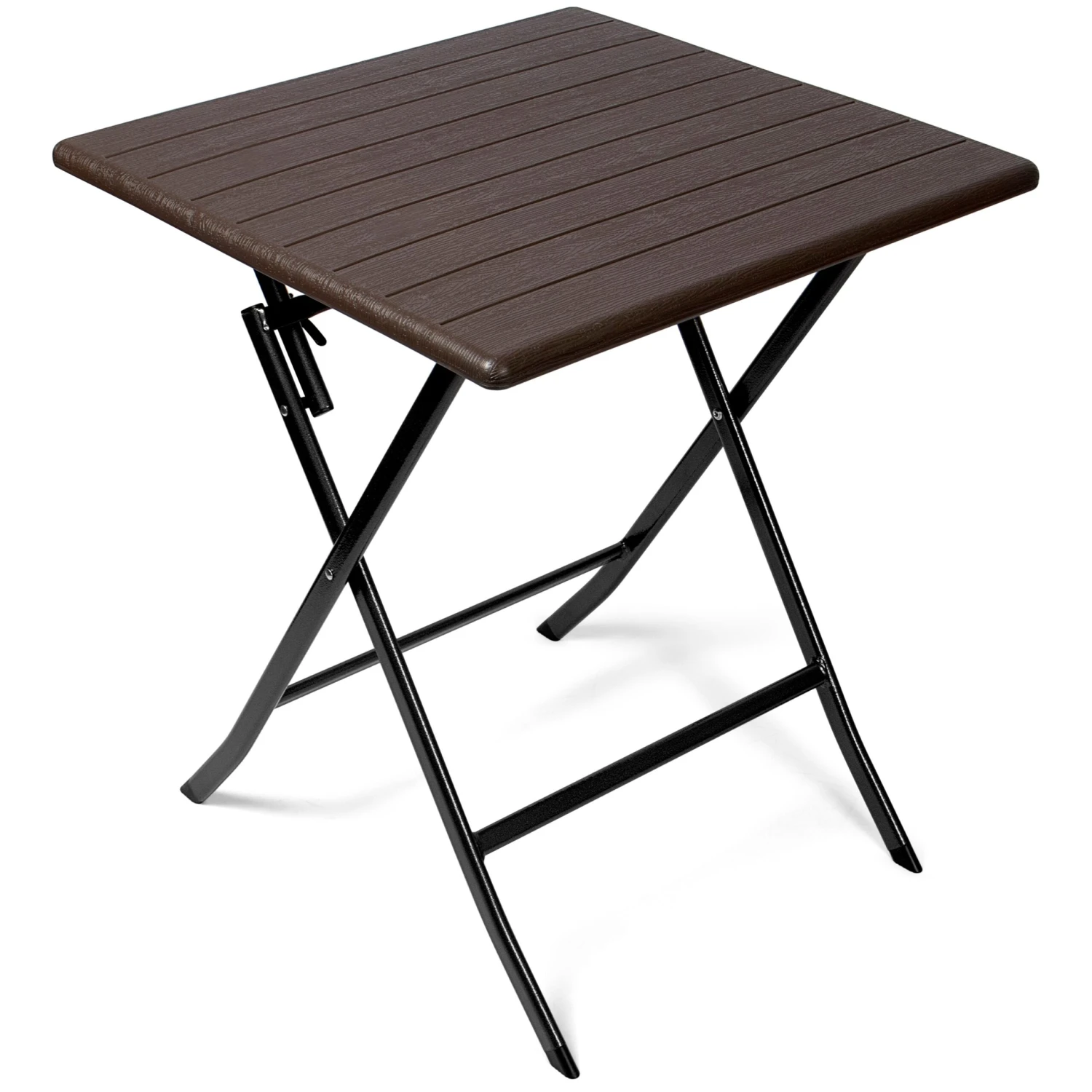 Ob ein Frühstück zu zweit oder eine Tasse Kaffe nach Feierabend – der kleine braune Tisch in Holz-Optik von Vanage ist für schöne Momente im Freien geschaffen.