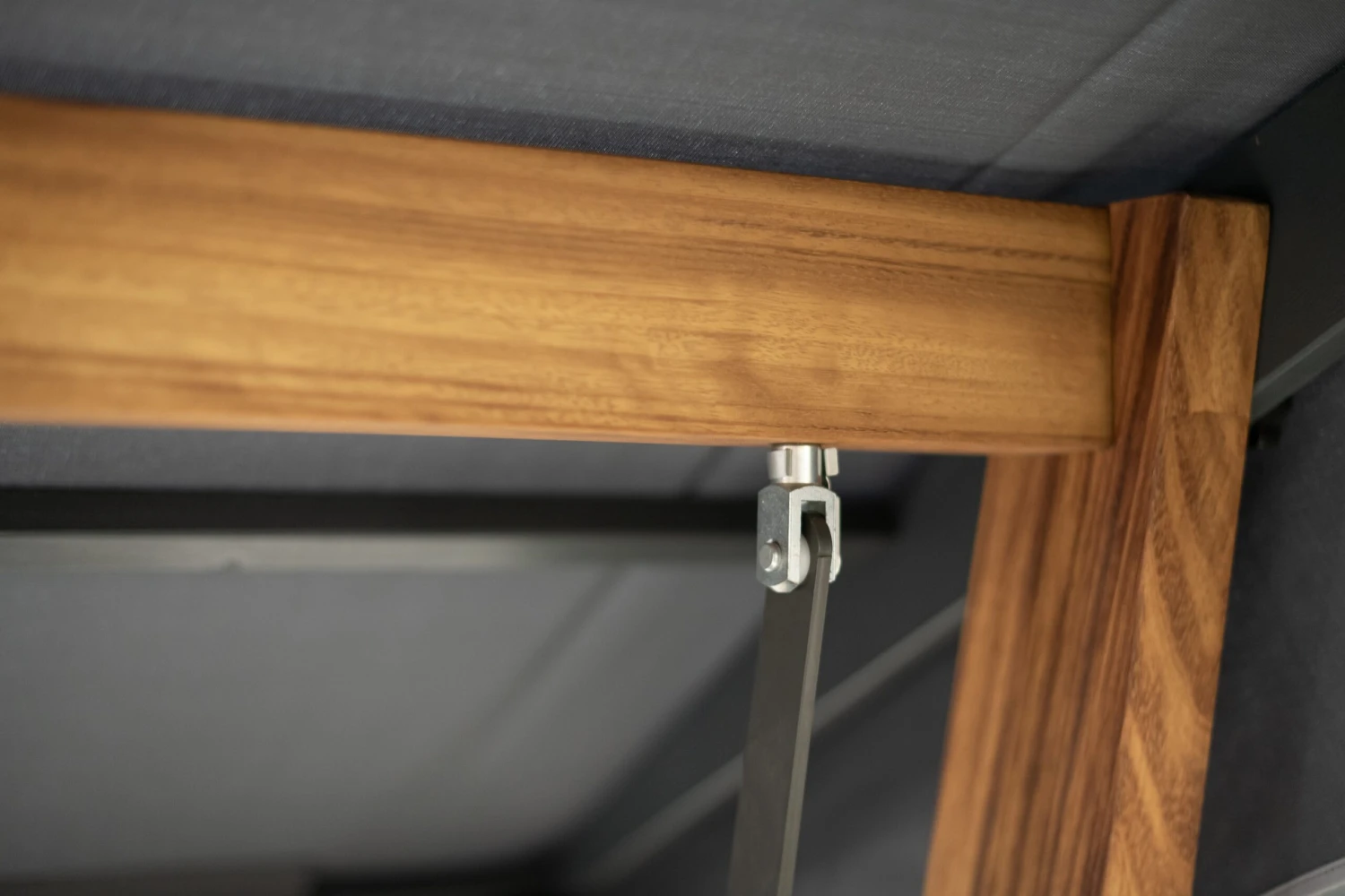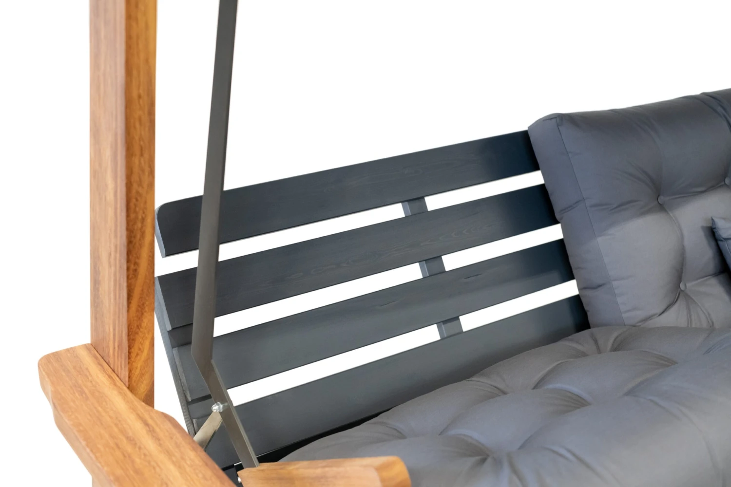 Die Westmann Hollywoodschaukel SIA 2400 bietet ein Höchstmaß an Qualität, Komfort und Ästhetik: Der Hauptrahmen ist aus Lärchen- sowie exotischem und besonders massivem, afrikanischem Iroko-Holz gefertigt.